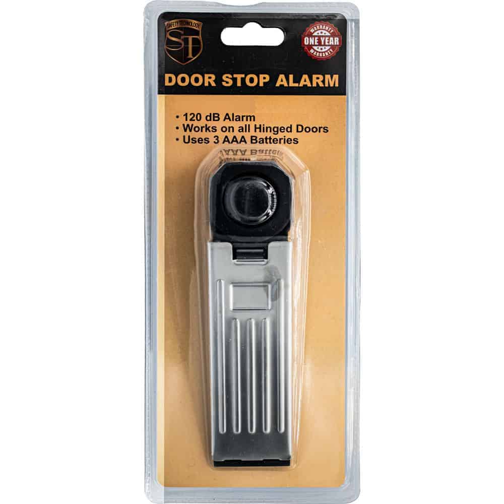 Use the DOOR STOP ALARM as an entry alarm and to block a door from being opened. If anyone tries to open the door, this 120dB alarm will sound. Alarm stops when pressure is released from door stop plate. There is also a movement sensor that will activate the alarm if it’s tampered with. On/off switch is on the back of the alarm and includes a low battery indicator light. Uses one 9-volt battery (not included). Measurements 6 3/8″ x 1 3/4″